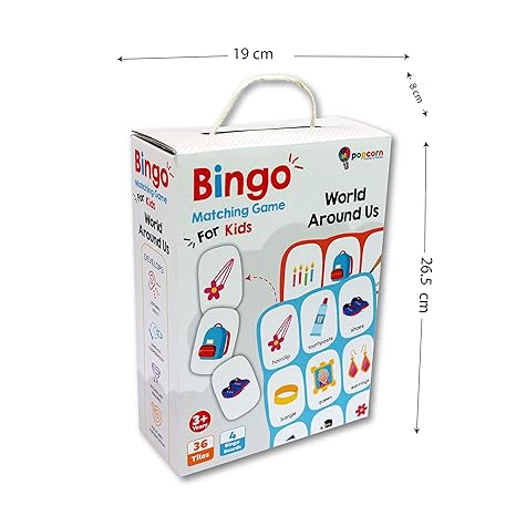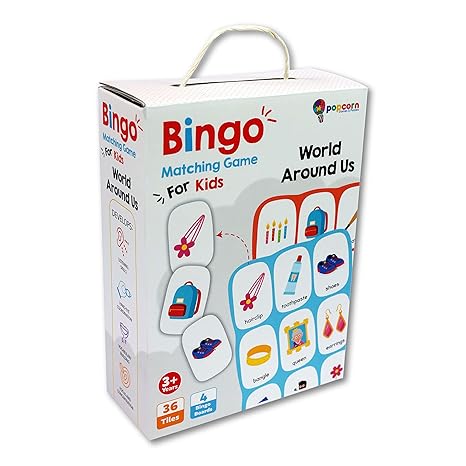 Popcorn Games & Puzzles Bingo World Around Us Matching Game for 3+ Kids Skills with 36 Tiles & 4 Boards