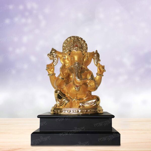 Svastika Golden Sitting Four-Armed Lord Ganesha Murti