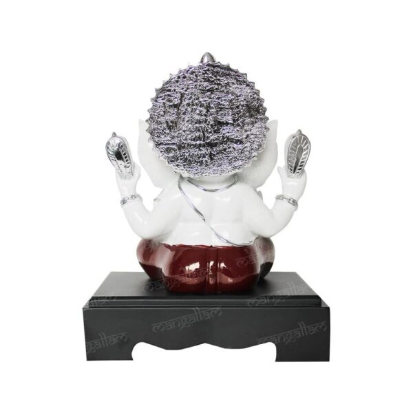 • This white and red Ganesha Idol made from polyresin is handcrafted in India. This Idol can be placed at the entrance of your house to protect your family members from evil energies as Lord Ganesha is known also known as the protector of the household.