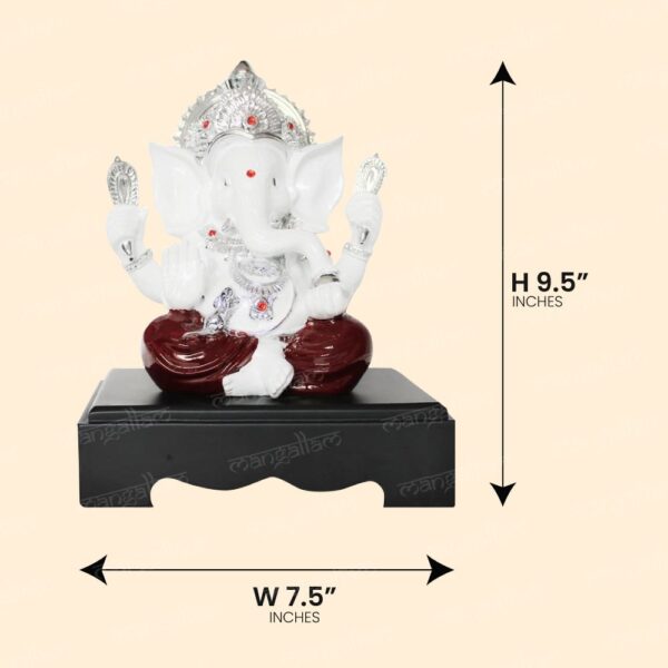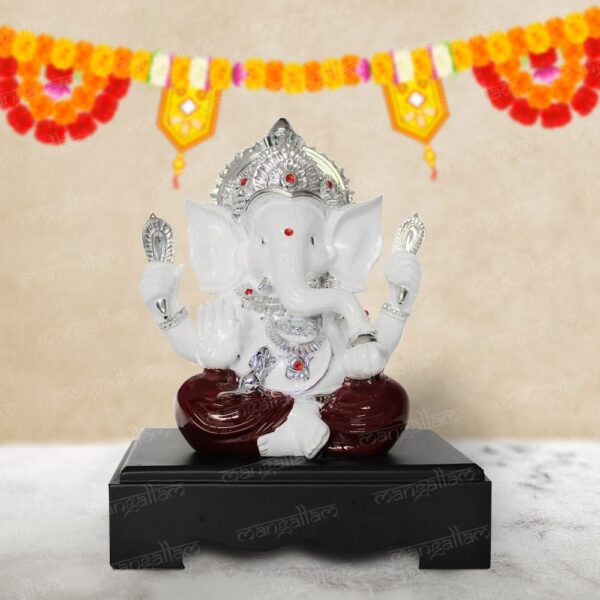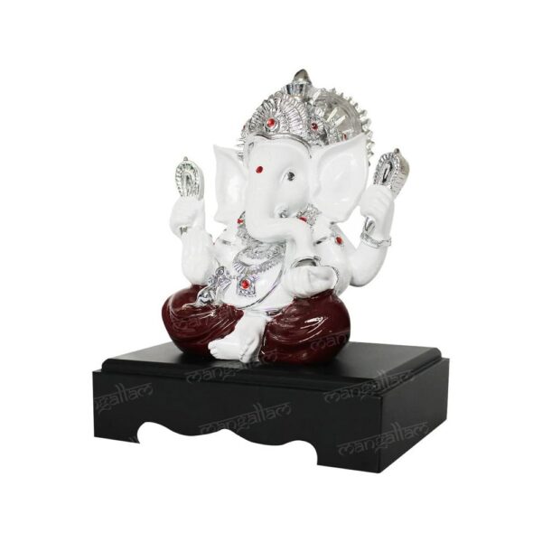 Svastika White & Red Ganesha Idol with Wooden Base – 9.5 Inch