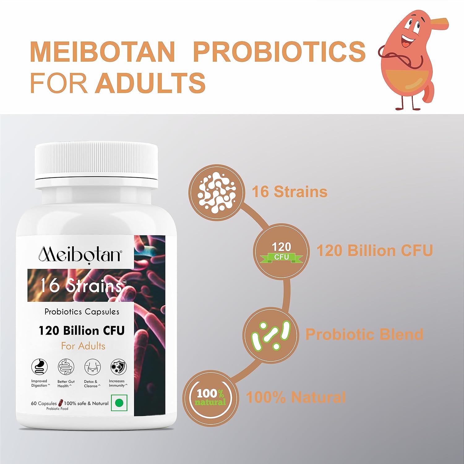 - Balanced, Effective Formula: Meibotan Probiotic is powered by 120 billion live cultures and features 16 beneficial strains, including Lactobacillus Acidophilus, to provide broad support for men’s & women's overall health.