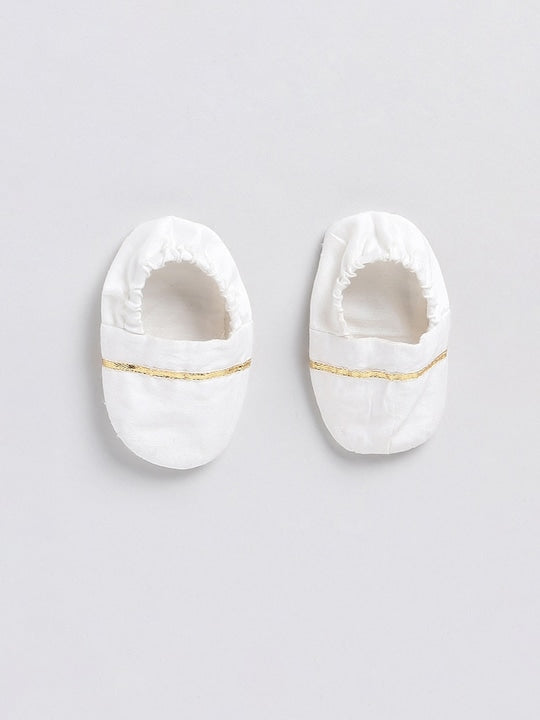 Vastramay Sishu Infant Boys Chanderi Cotton Kurta with Dhoti Pants, Cap & Shoes