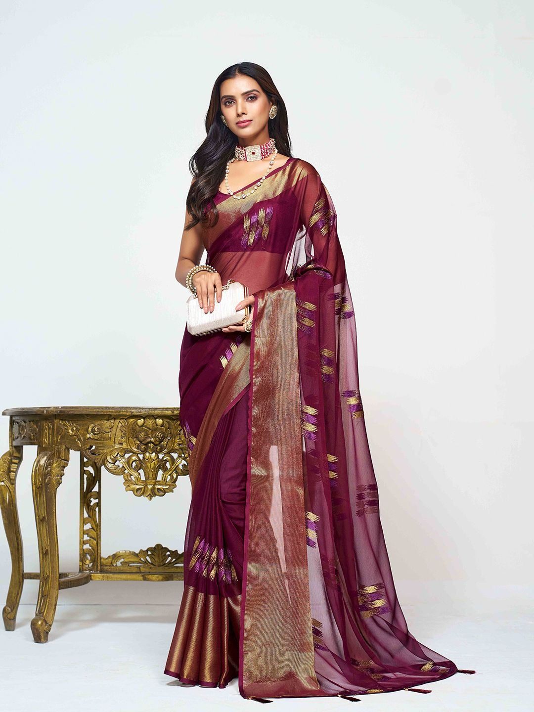 Sangria Woven Design Pure Chiffon Saree