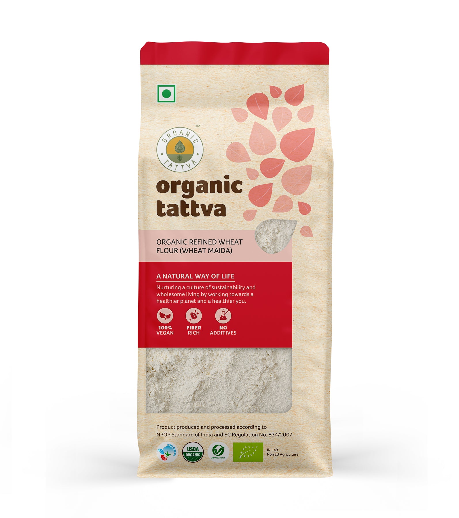 - Organic Tattva’s Organic Wheat Maida (500g) is full of iron, calcium and protein.