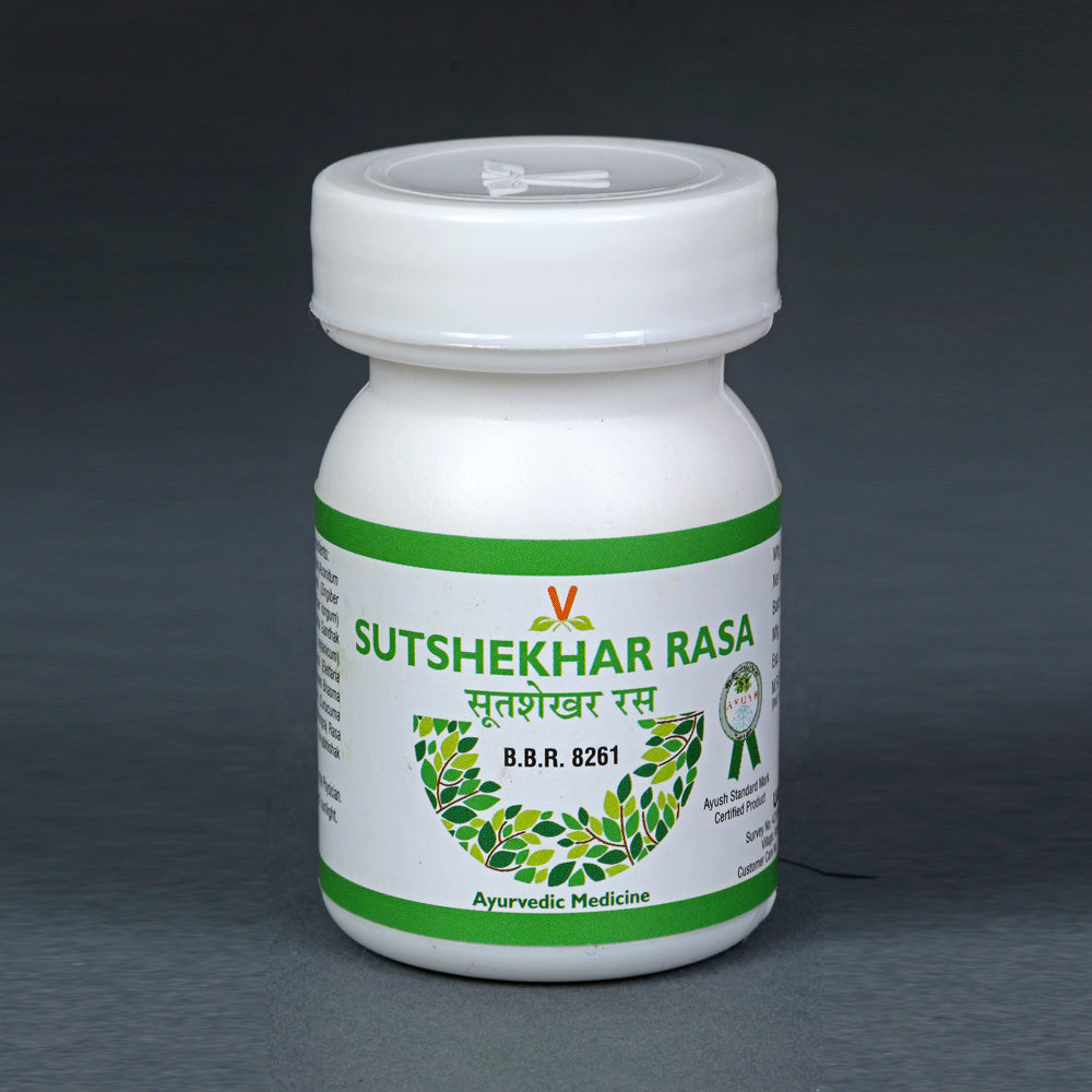 • Sutshekhar Ras is an Herbo-Metal preparation, which means it contains herbs and Bhasma (calcination) of “purified” metals as per Ayurvedic medicine preparation protocols of the stream Rasa Shastra.