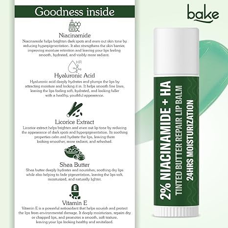 Bake 2% Niacinamide + Hyaluronc Acid Tinted Butter Brightening Lip Balm 24 Hour Moisturization - 5 gms