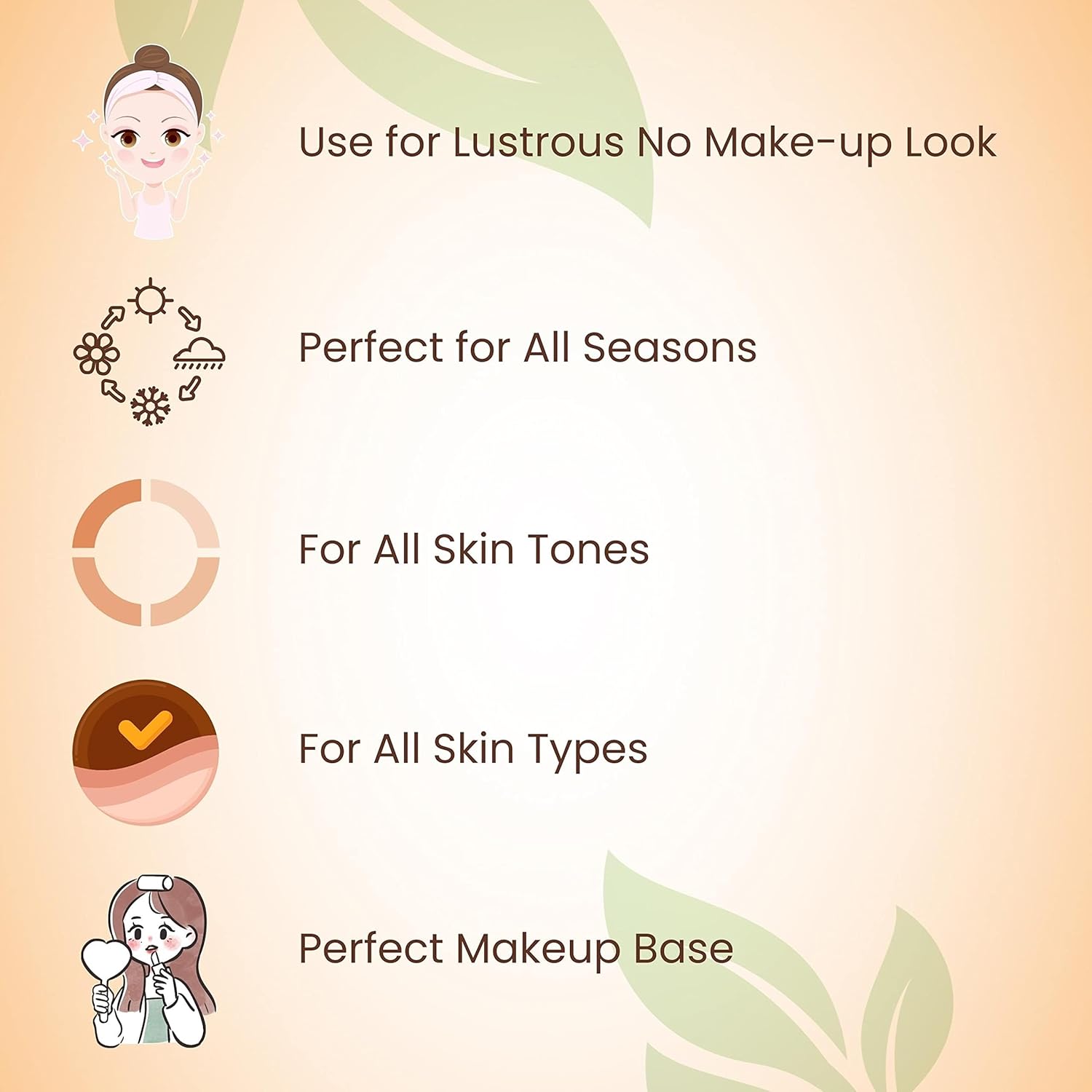 - Use it by itself for a lustrous no-makeup look!