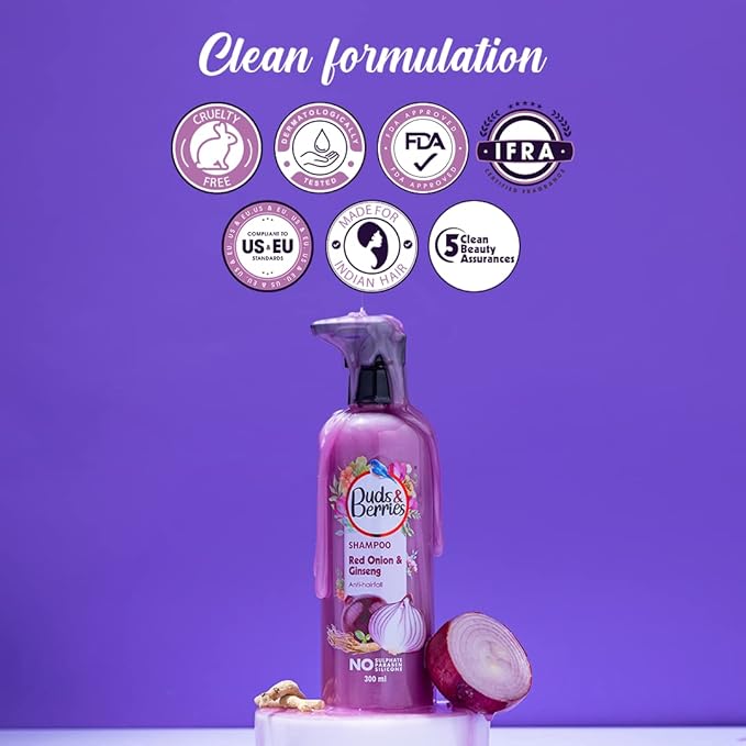 Buds & Berries Red Onion and Ginseng Anti-Hairfall Shampoo - 300 ml