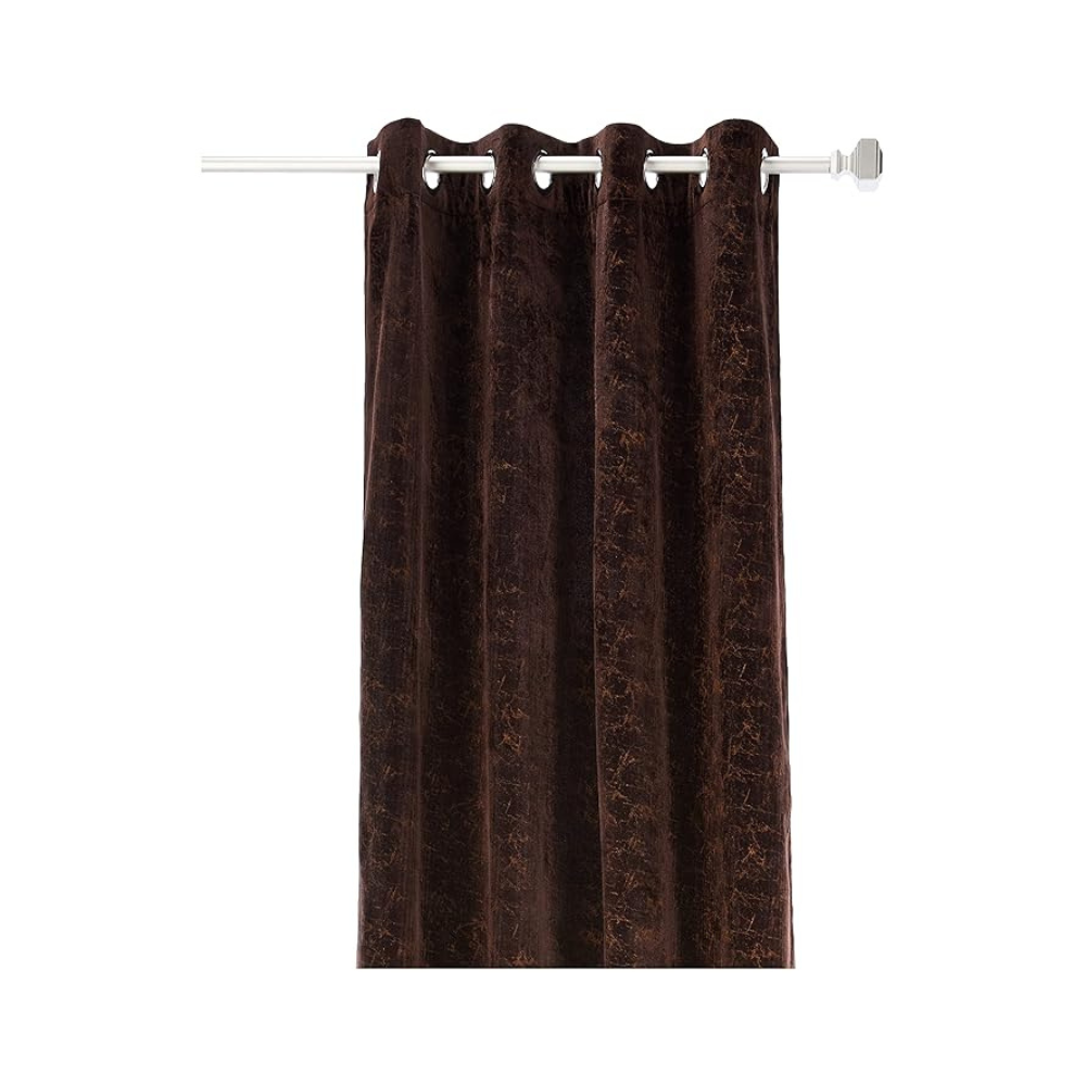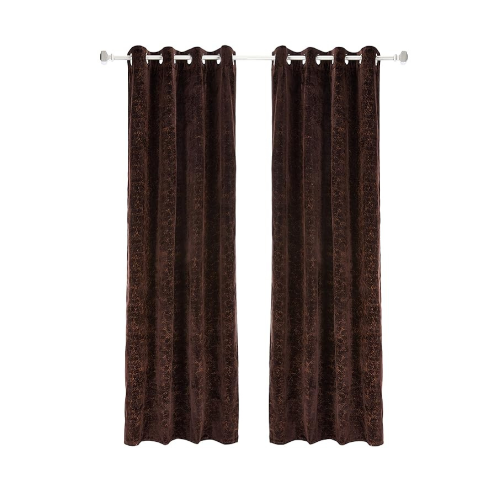 Cortina Plain Velvet Curtains With Metal Eyelet | Soft & Smooth | 7 Ft Long | Set of 2 | Brown