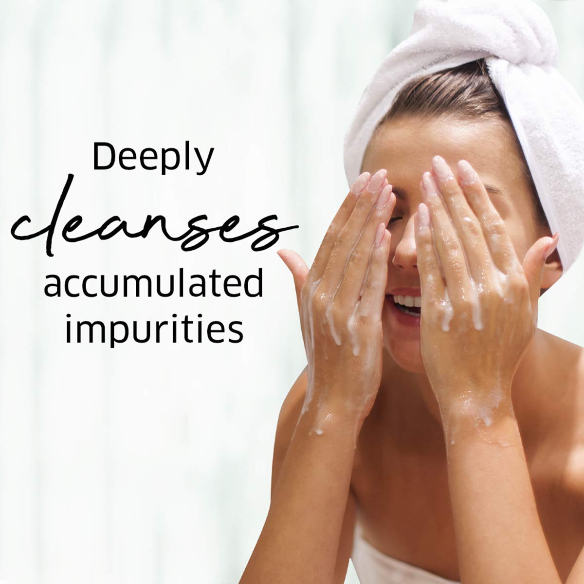 - A foaming cleanser that lifts away impurities without drying out the skin