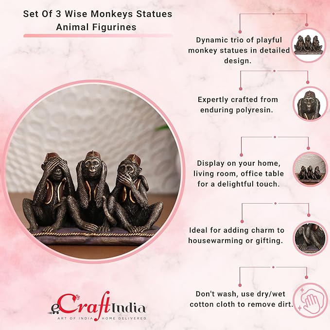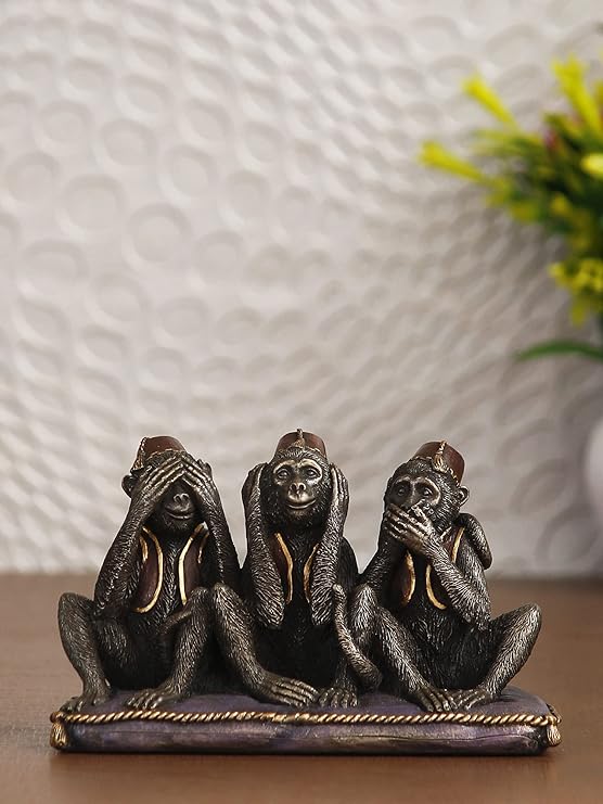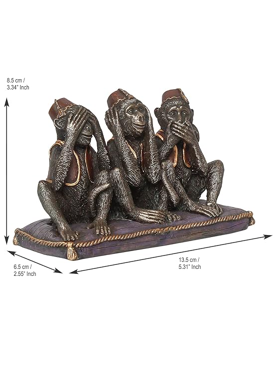 • Package Content: One Handcrafted Polyresin Bronze Finish Set Of 3 wise monkeys Statues Animal Figurines Decorative Showpiece