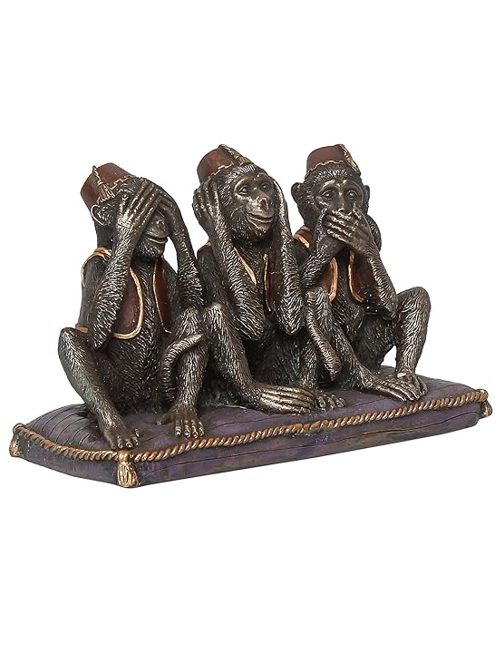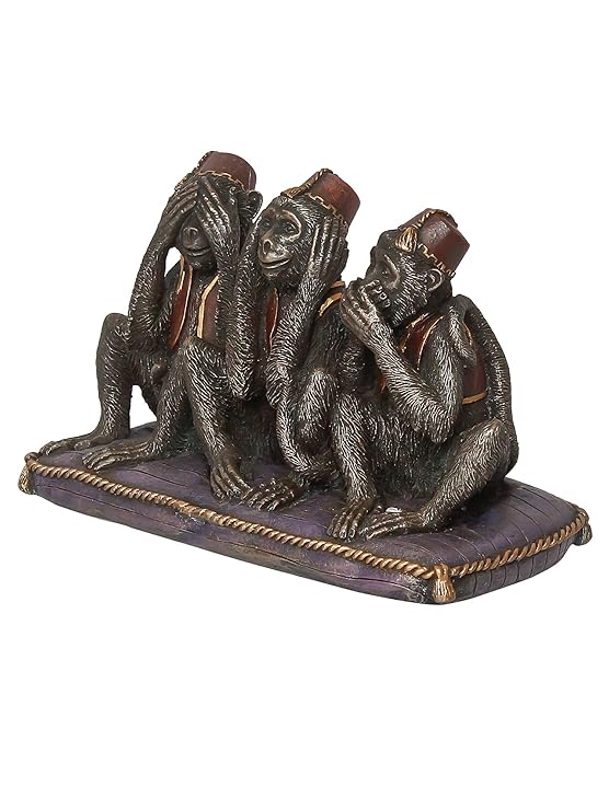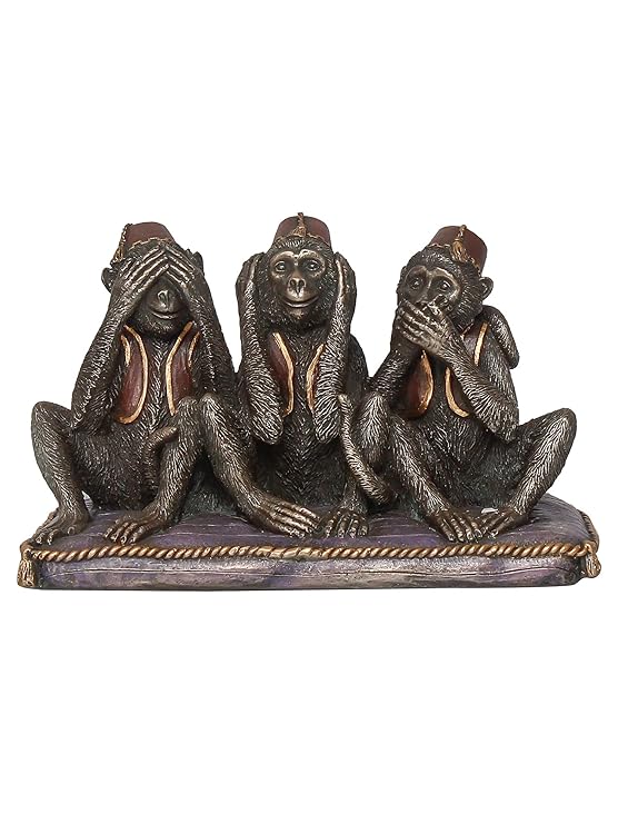 • The three wise monkeys represent the famous "See no evil, hear no evil, speak no evil" proverb. The intricate detailing and bronze finish of the polyresin statues make them exquisite decorative pieces. It would be a perfect addition to any home decor item.