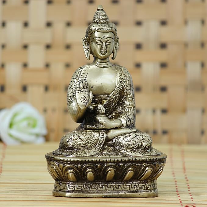 Ecraftindia Meditating Buddha Brass Figurine | Brown and Golden
