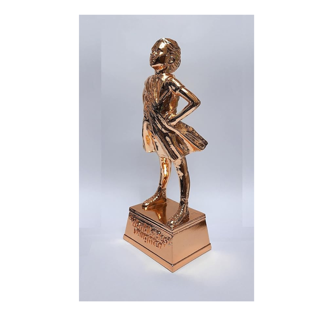 - Gold Art India Girl figurine is made from Rose gold coated with bright finish depicting a strong girl and fearless girl with a caption 'World's Best daughter' inscribed at the base of the figurine.