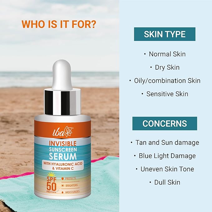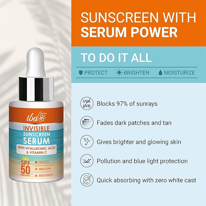 Iba Invisible Sunscreen Serum Spf 50 Pa+++ With Hyaluronic Acid & Vitamin C - 30 Ml