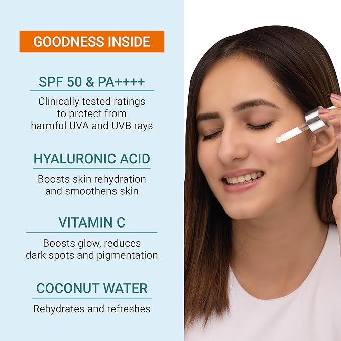 - Key Ingredients: Hyaluronic Acid: Boosts skin hydration & smoothens skin | Vitamin C: Boosts glow, reduces dark spots & pigmentation | Coconut Water: Rehydrates & refreshes | Glycerine