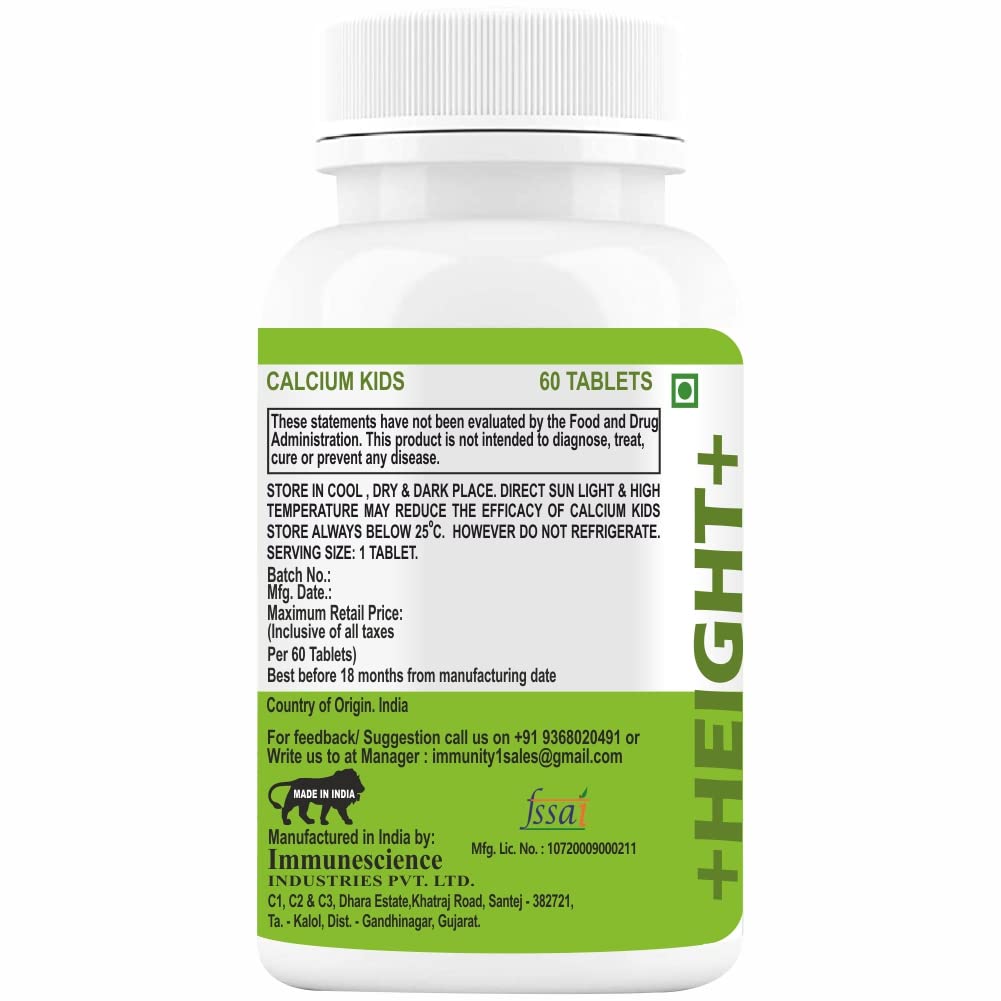 - Growth, height, and development: calcium citrate malate chewable tablets for kids are water-soluble, making them more bioavailable than other calcium salts like calcium carbonate. When used long-term, our tablet does not cause bloating or calcium deposits in the body.