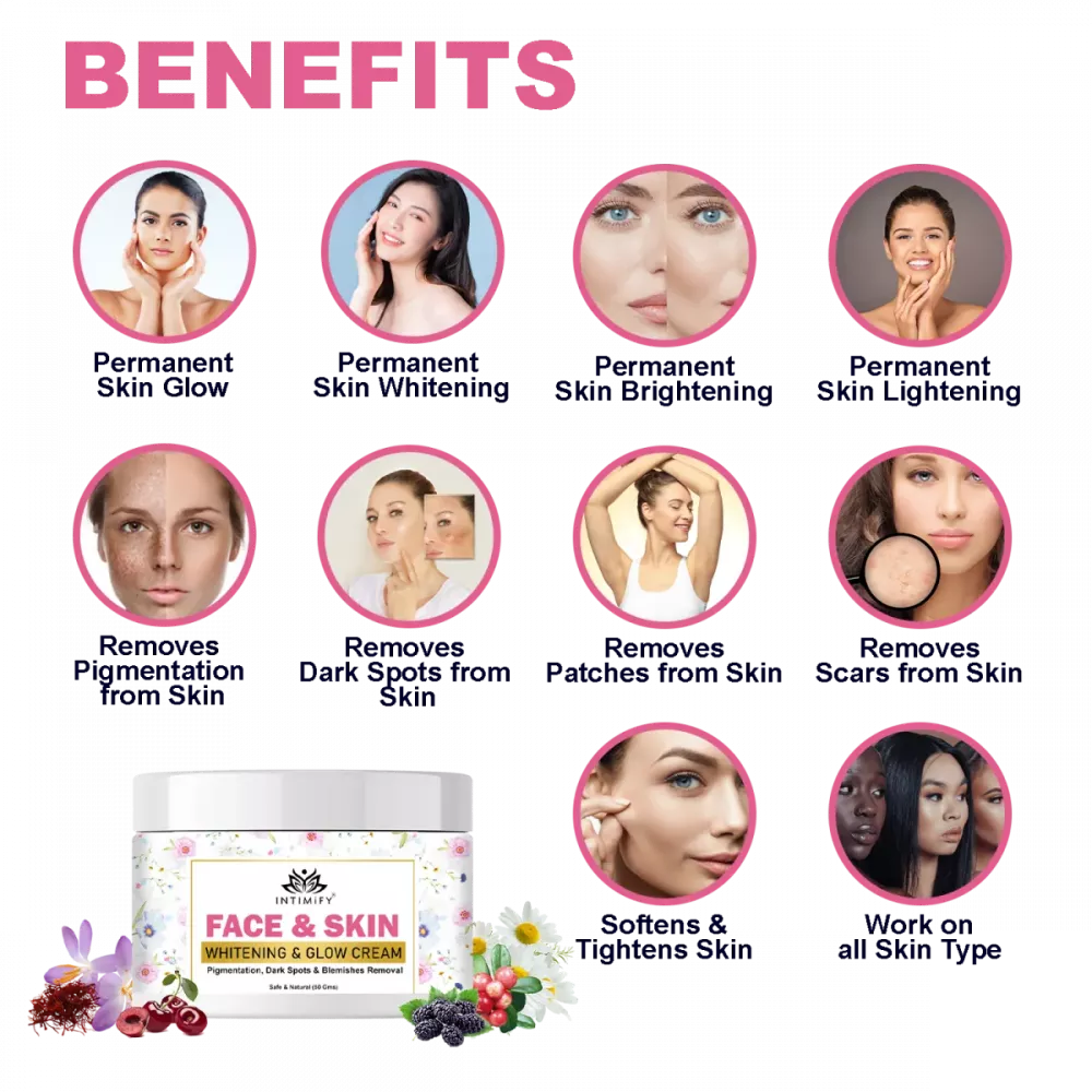 - Intimify face & skin whitening cream moisturises the skin exceptionally well.