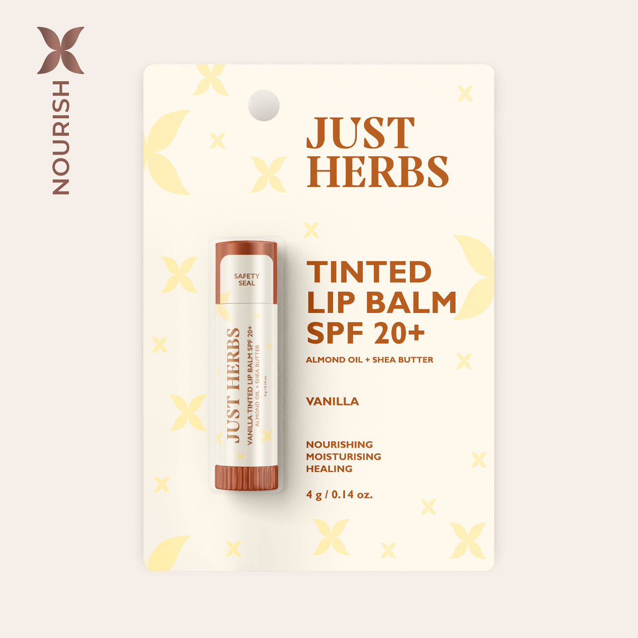 • Just Herbs Tinted Lip Balms Formulated with a nutritious blend of Almond Oil & Shea Butter, which helps reduce pigmentation, repair chapped lips & seal in moisture.