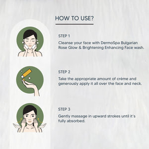 - Dermo Spa Bulgarian Rose Radiance & Renewal Night Crème works all night and replenishes the skin and provides visibly more glowing & brightening effect.