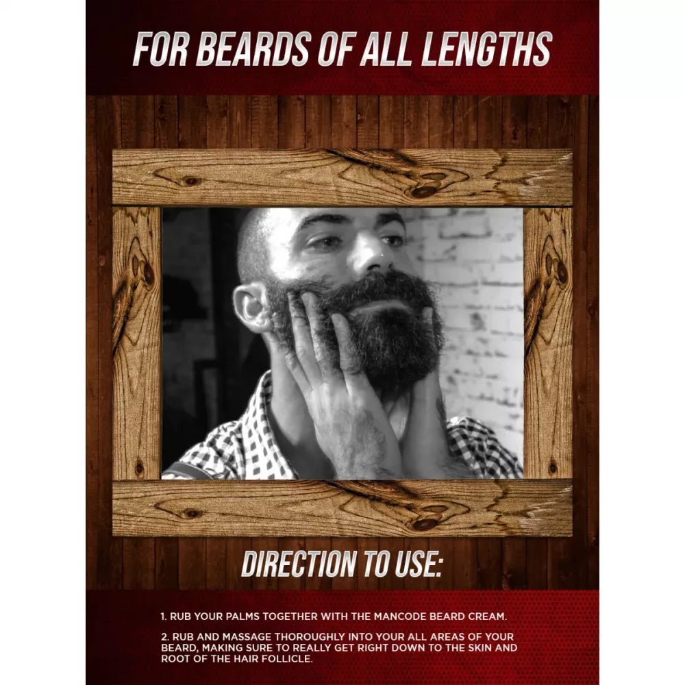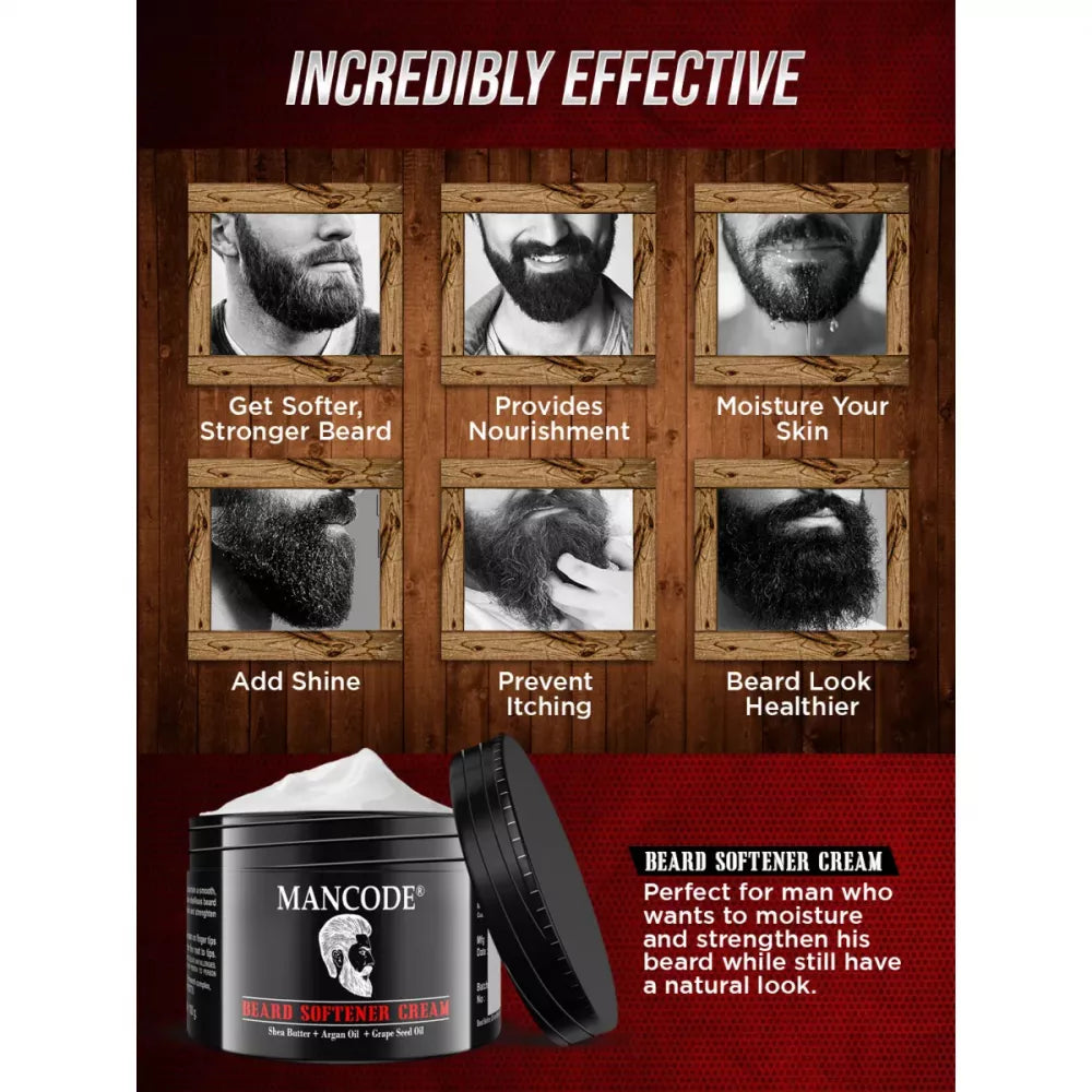 - Mancode beard softener cream for men is portrayed as macho, dominant, and kind, as well as subtle, courageous, trustworthy, hardworking, and more beautiful, especially when their character is an introvert in their approach to life.
