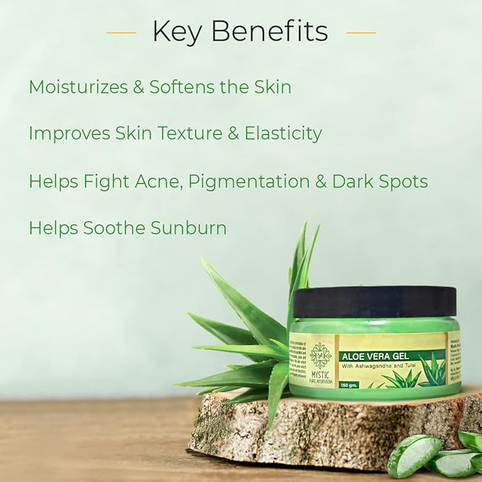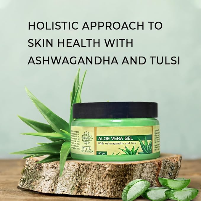- Moisturizes and hydrates the skin: Aloe vera is a natural humectant, which means it helps to retain moisture in the skin. Ashwagandha and tulsi also have moisturizing properties, making this gel ideal for all skin types, including dry, sensitive, and oily skin.