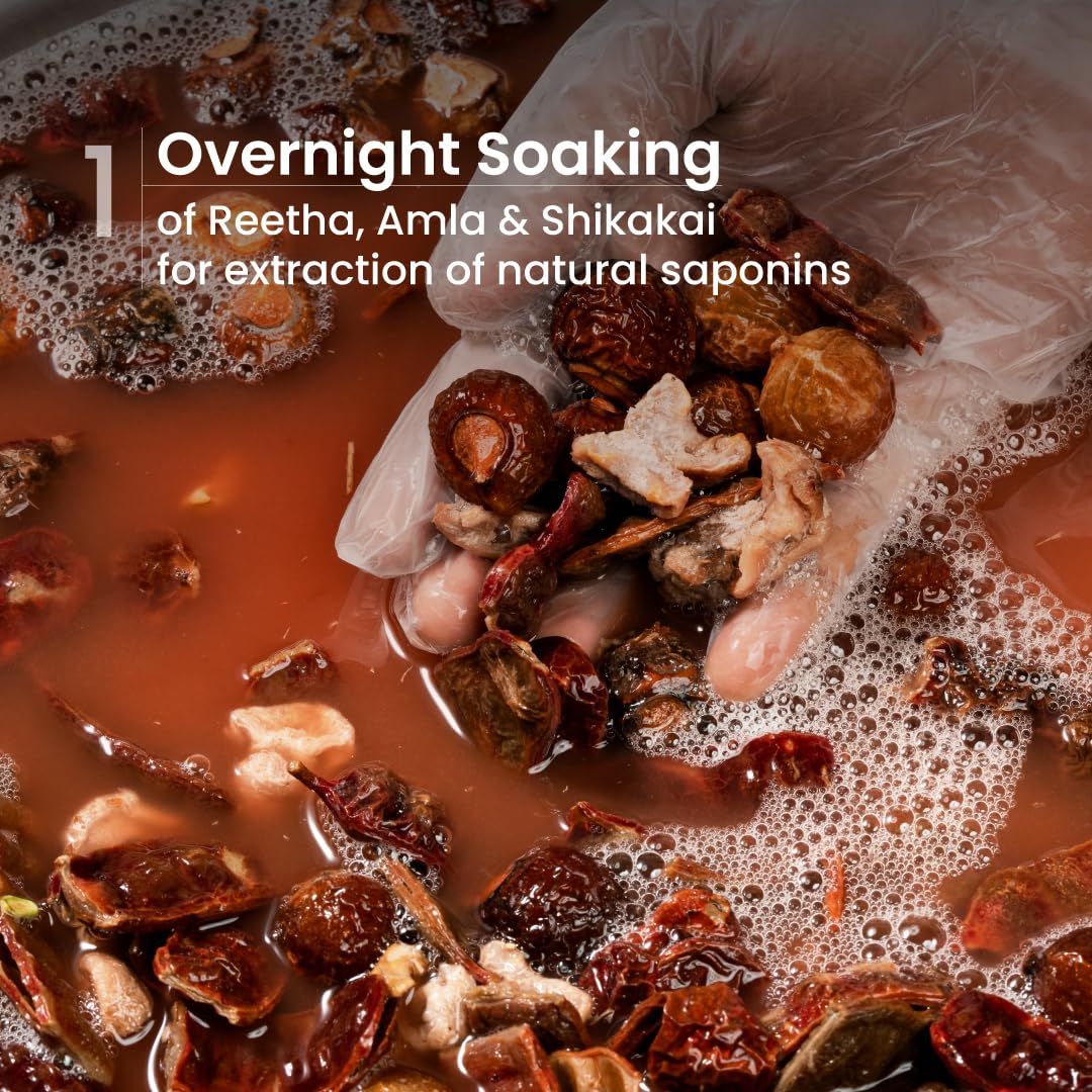 • Traditional 9-care Ayurvedic Formula: Created using a traditional ayurvedic process, ensuring a holistic approach to hair care. Enriched with Natural Oils: Combines the nourishing properties of hibiscus, reetha, amla, jojoba, argan, black sesame, castor, and coconut oils for a comprehensive hair care experience.