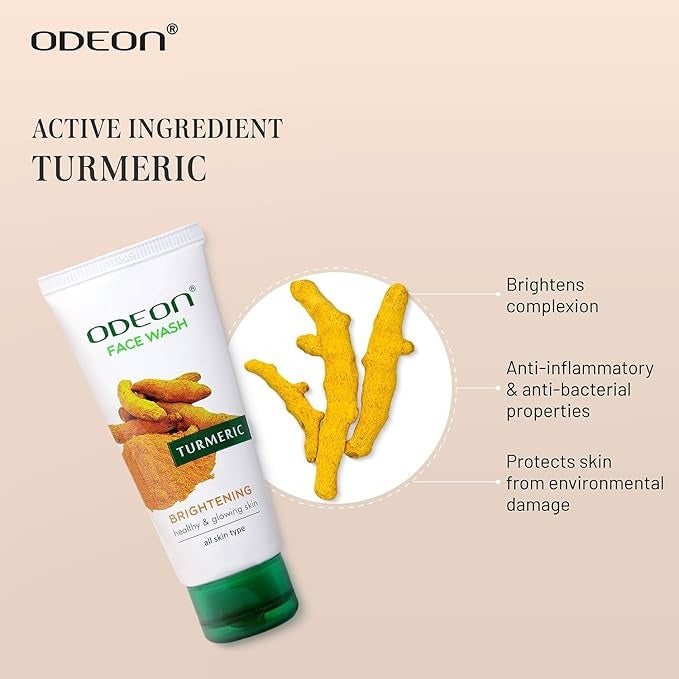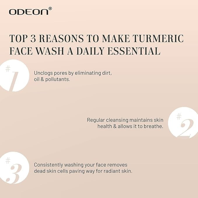 - Natural Beauty: Embrace the natural way to healthy, glowing, and nourished skin. ODEON Face Wash with Turmeric Extract is your partner in achieving a refreshed, rejuvenated, and revitalized look.