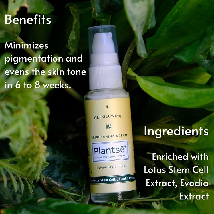 - Get glowing face cream - enriched with lotus stem cells, evodia extract - brightening and nourishing cream minimizes pigmentation and evens the skin tone in 6 to 8 weeks.