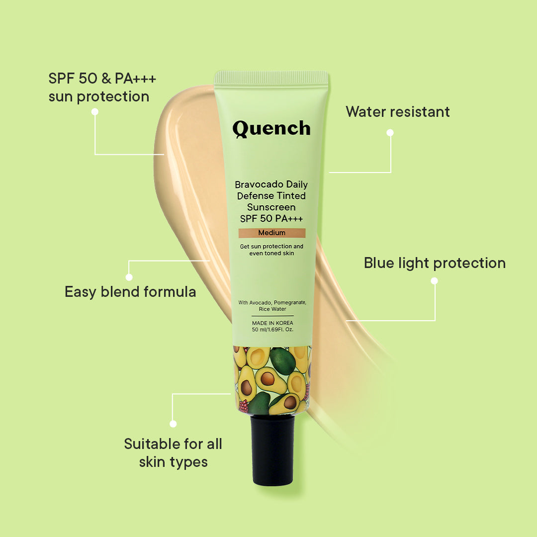 Quench Daily Defense Tinted Sunscreen SPF 50 PA+++ Medium - 50 ml