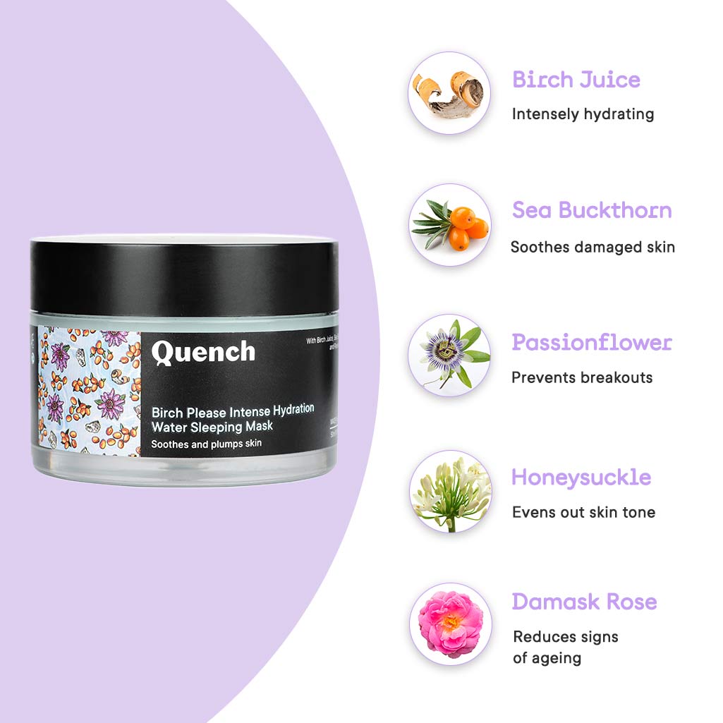 - Cut the chase and get soft, dewy skin overnight! We're not kidding when we say that our Birch Please Intense Hydration Water Sleeping Mask is an overnight skin-tox treatment that delivers high doses of hydration to make skin plump and juicy.