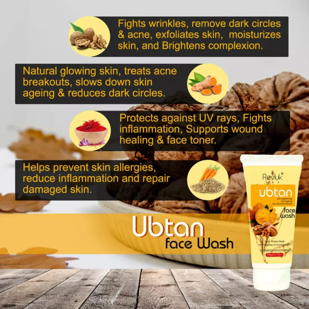 • This ubtan Face Wash helps to remove and prevent tan, repair sun damage and lighten skin and also dermatologically tested, balances the pH level of the skin and free from dangerous chemicals.