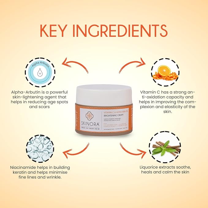 Skinora Brightening Cream With Vitamin C & Alpha Arbutin for All Skin - 50 Gms