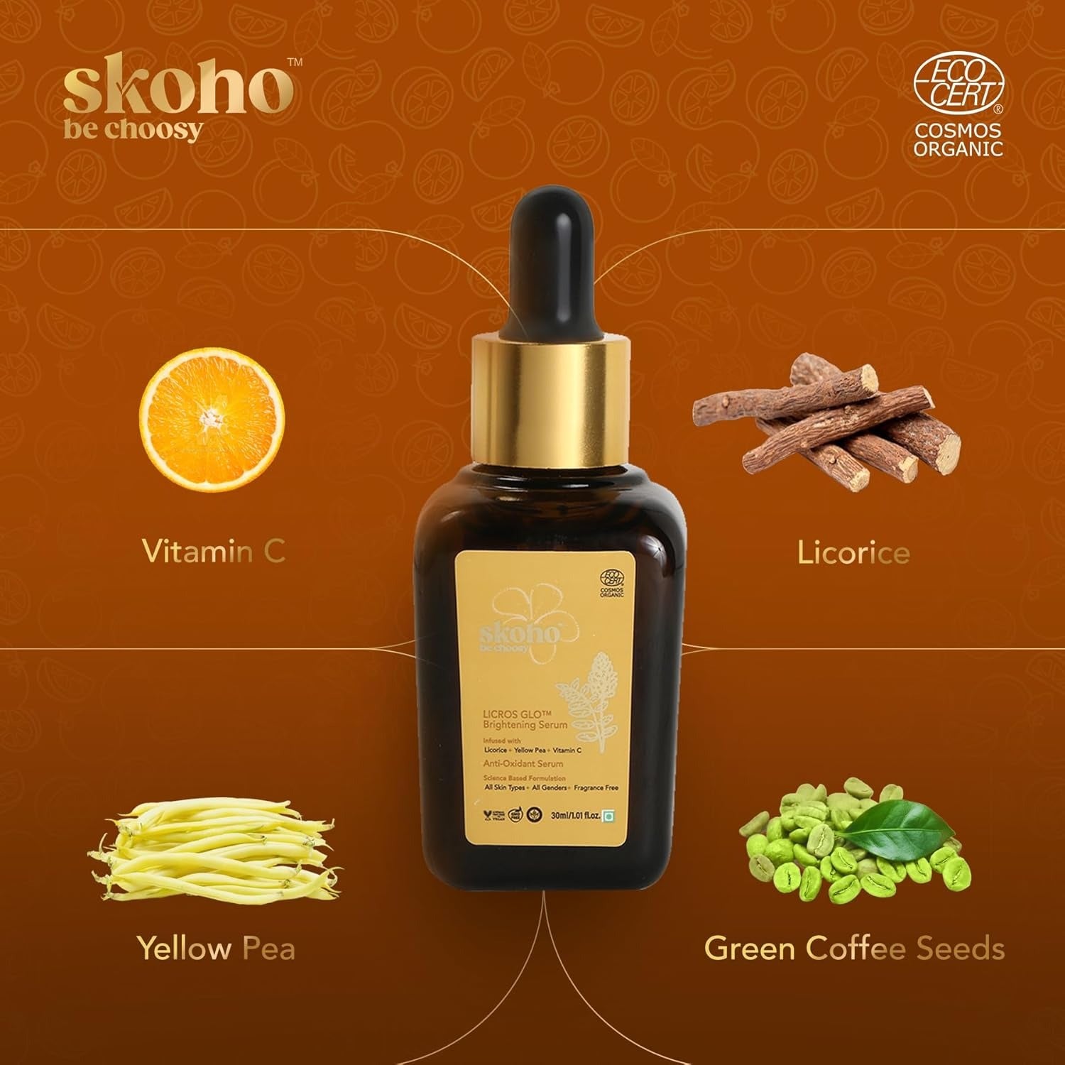 Skoho Organic Vitamin C Face Serum with 98.932% Naturality - 30 ml