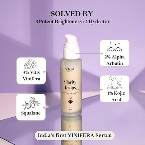 • Advanced Brightening Formula: Solved Labs Clarity Drops contain a powerful combination that goes deep into your skin fast & with the help of plant based ingredients like Kojic acid, it helps to reduce sun induced pigmentation. Provides an even tone for clear and healthy skin.