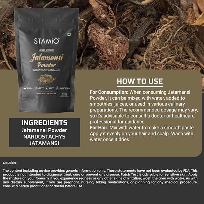 • Natural Jatamansi Powder for Hair & Scalp, Eating, Drinking, Digestive health | Target Audience: Men & Women | Country of Origin: India