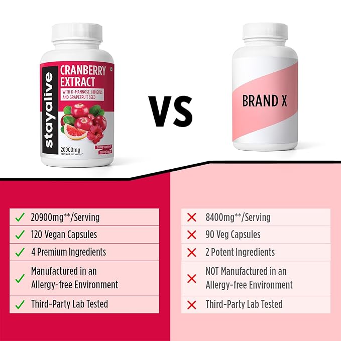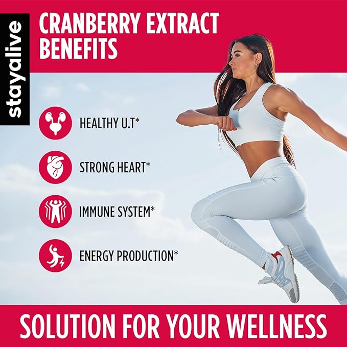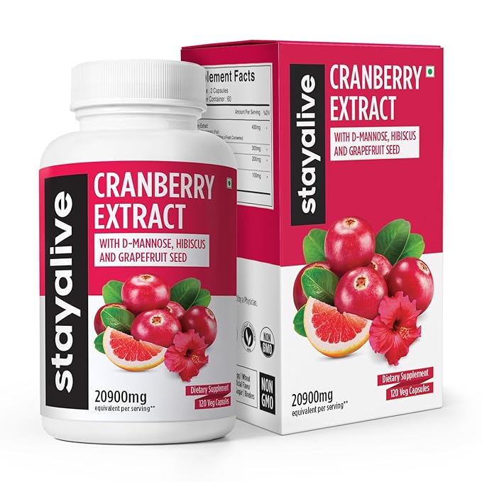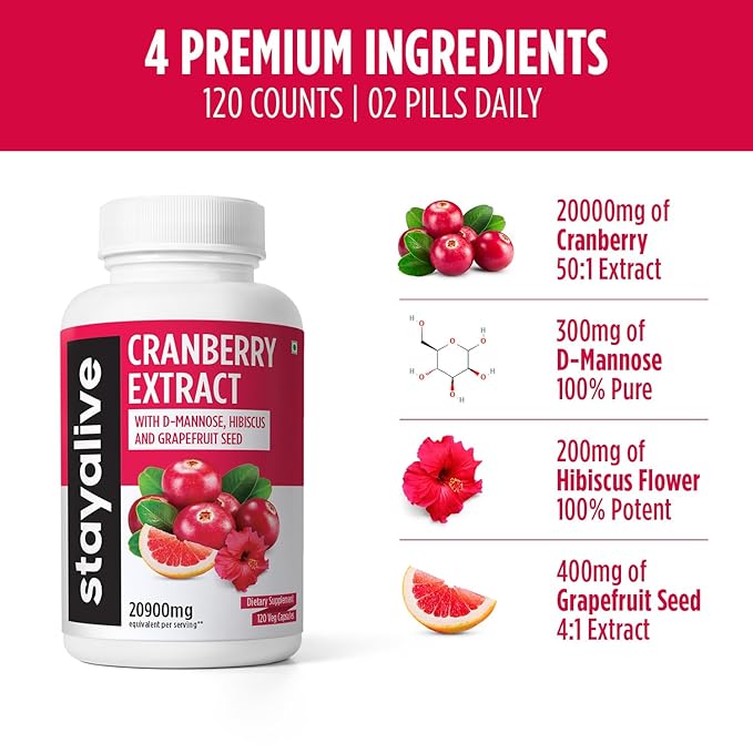 StayAlive Cranberry Supplement for UTI PCOS PCOD 20900mg 50:1 Cranberry Extract - 120 caps