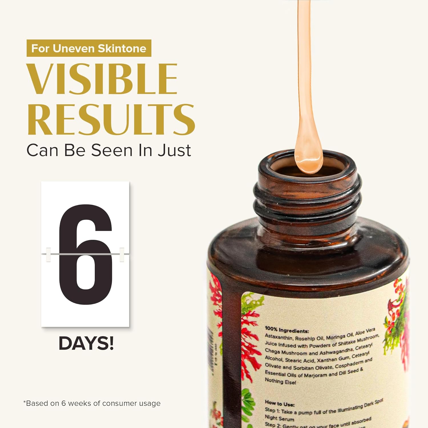 • Powered by Astaxanthin to shield against free radicals and enriched with Chaga, Shiitake Mushrooms, Ashwagandha, and Moringa Oil, this night serum for glowing skin also helps reduce wrinkles, fine lines, and pigmentation while restoring a smooth, youthful complexion.