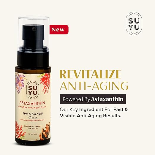 - Anti-Aging Benefits: Suyu Face Cream is designed to combat signs of aging, reducing the appearance of wrinkles and fine lines. Its potent ingredients Astaxanthin, Reishi, Chaga Mushroom, and Saffron work overnight to revitalize your skin, making it smoother and more youthful.