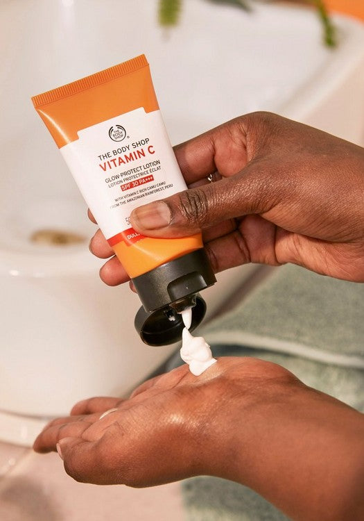 • Now that your skin is prepped, smooth on our Vitamin C Glow-Protect Lotion SPF30 as part of your morning skincare routine