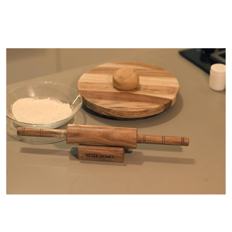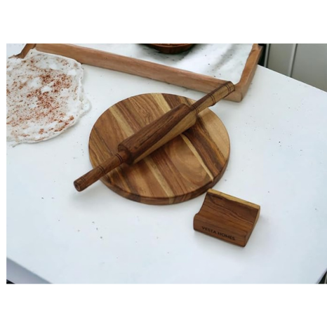 Vesta Homes Wooden Chakla Belan Set for Kitchen Premium Solid Wood Roti Rolling Board