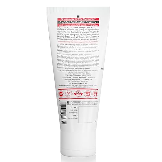Volamena Apple Cider Vinegar Face Cream Light Weight Oil Free Mosturizer Cream - 100 ml