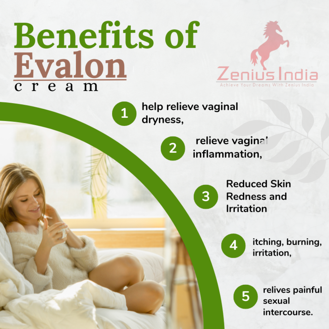 • Zenius Evalon Cream is a Vaginal Cream specially designed to address the discomfort experienced during menopause.