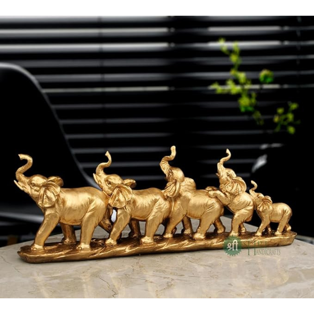 Indicast Resin Five Elephant on Base Animal Figurines Handcrafted Decorative Showpiece Idol