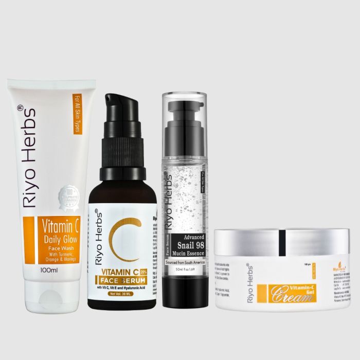 Riyo Herbs Vitamin C Facewash & Vitamin C Face Serum & Vitamin C Gel Cream & Snail Mucin Combo