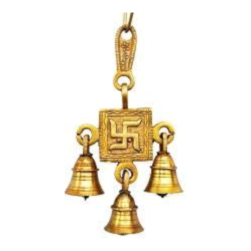 Uapan Metal Craft Golden Brass Hanging 3 Bells Swastika Hanging Decor