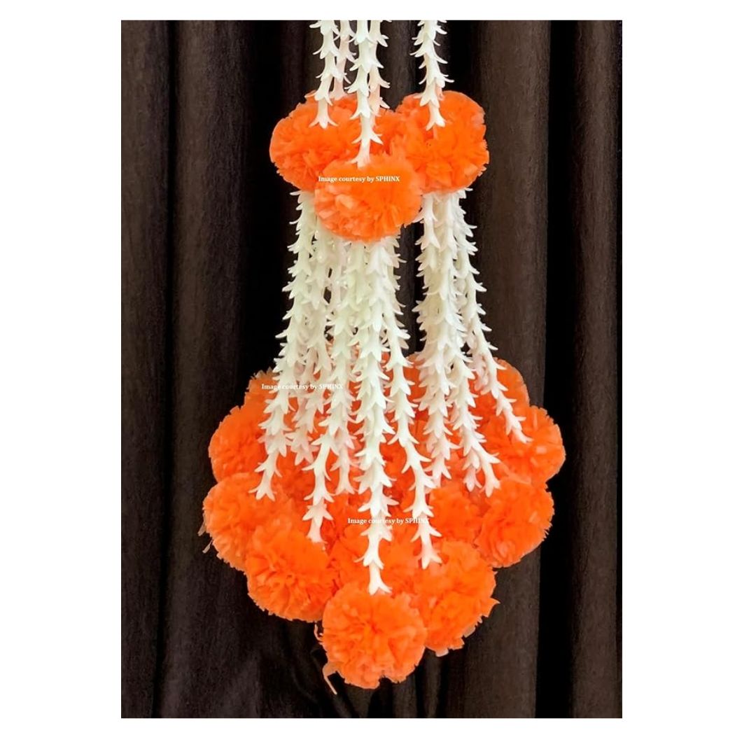 Artificial Rajnigandha & Clustered Marigold Strings for Decoration Approx 2.33 ft -Light Orange