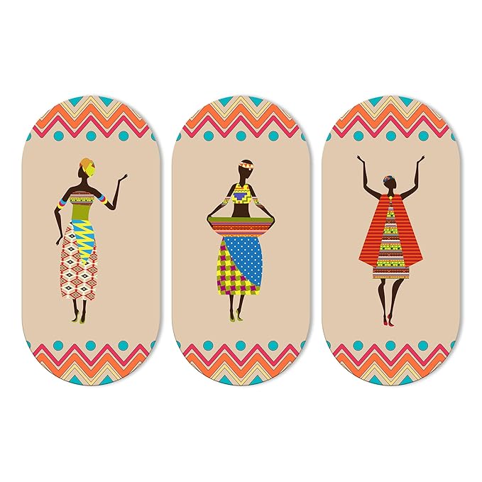 Artvibes African Women Warli Art Wooden Wall Hanging for Home Decor | Set of 3