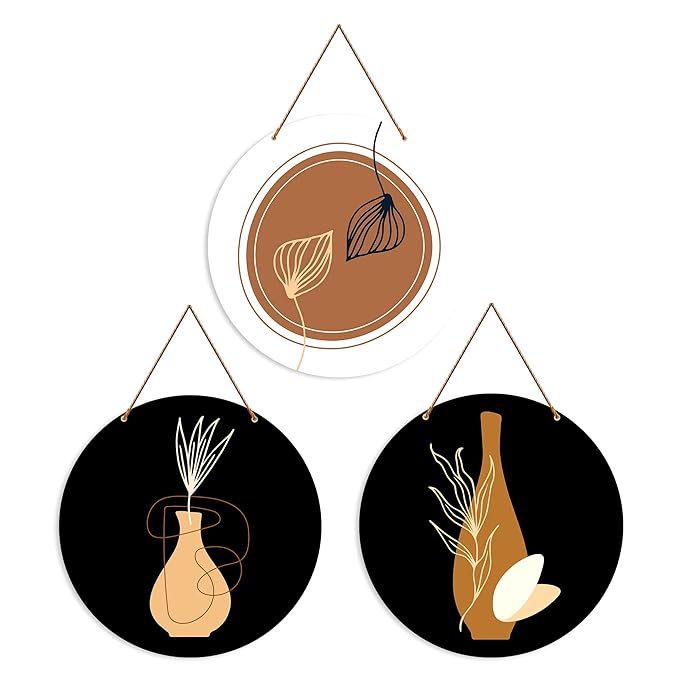 Artvibes Happy Mind Happy Life Wooden Wall Hanging for Home Decor | Decorative Mdf Wall Hanger Artwork | Set of 3