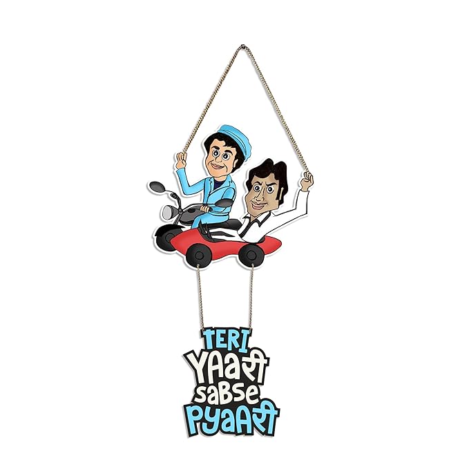 Artvibes Jai Veeru Bike Printed Wood Wall Hanging With Quotes for Home | Wooden Decorative Item